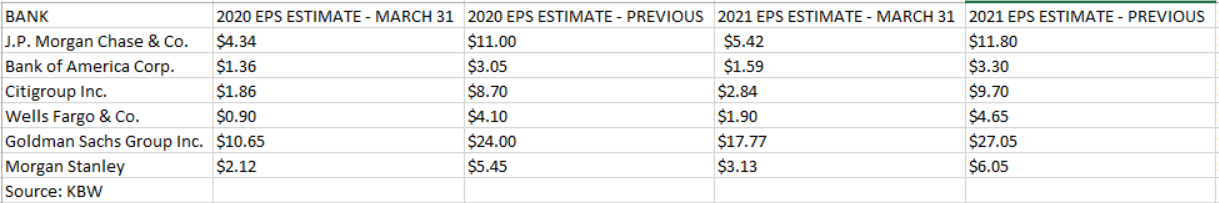 Tässä muutamien isojen suhteen KBW:n päivitettyä ennustetta: