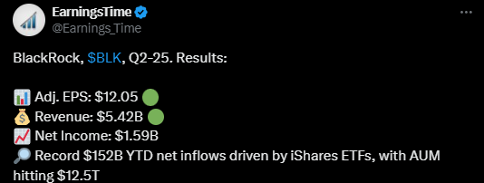 BlackRock rapporterade ett stabilt resultat och tillgångarna ökade kraftigt, vilket främst berodde på dess ETF-fonder och privata marknader.