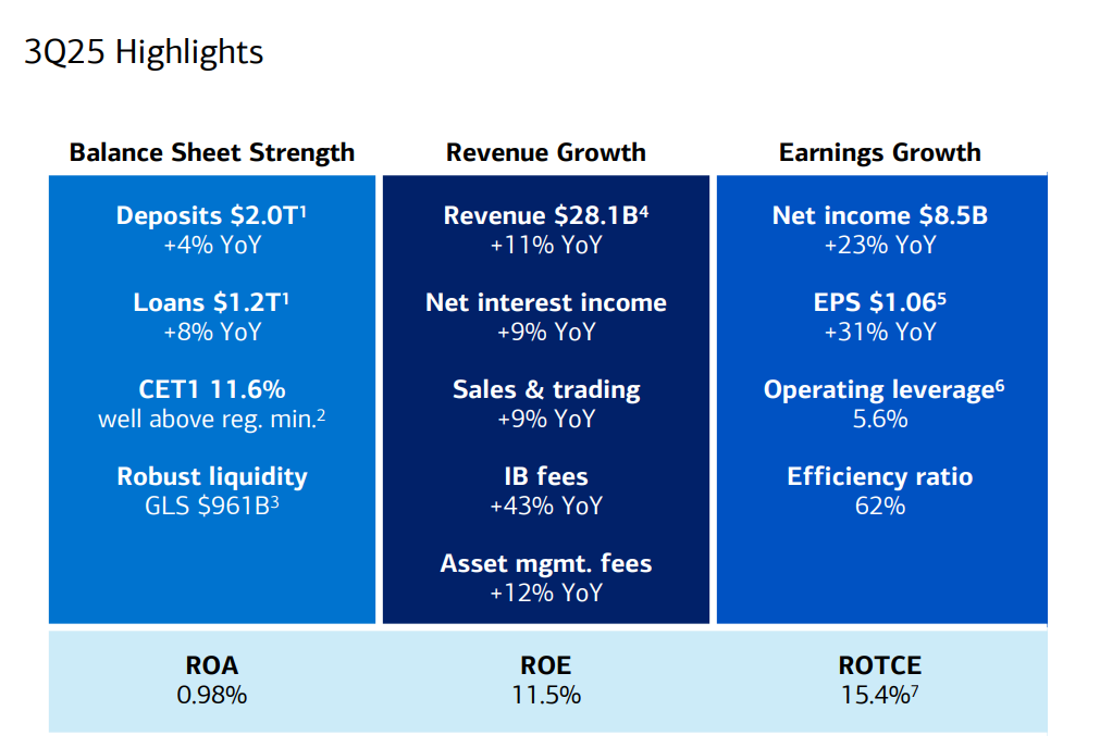 CEO David Solomon korosti asiakkaiden luottamusta ja lisäksi yhtiön keskittymistä tehokkuuteen sekä riskienhallintaan. Hän painotti myös tekoälyn roolia tulevaisuuden palveluiden tehostamisessa, JPM Morgan ei siitä, niin paljoa huhuillut. .