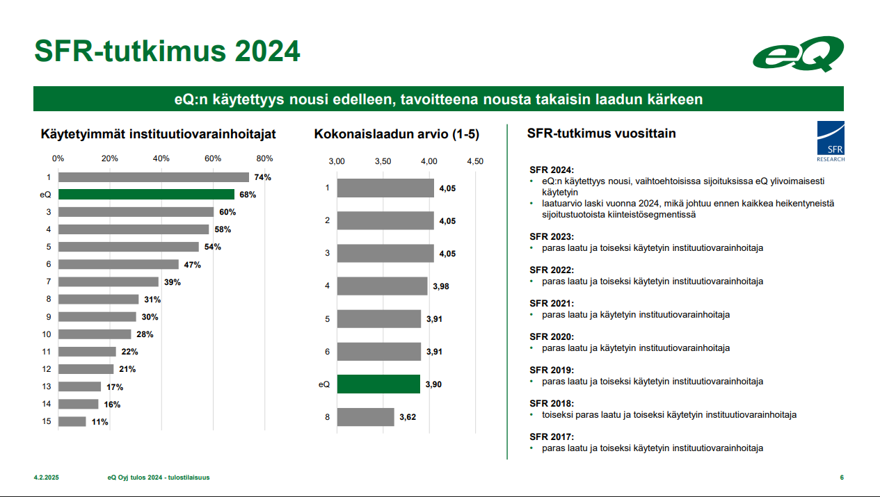 Pitkän aikavälin tuottotavoite on noin 5–6 % vuodessa, perustuen pääosin vuokrakassavirtaan.