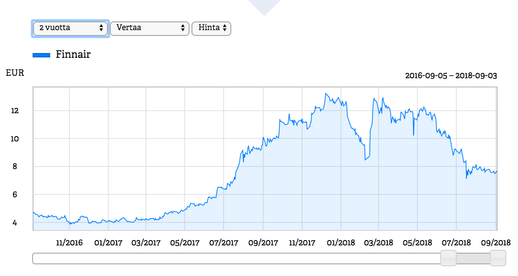 Finnair ei kauheasti ole puhuttanut, nyt kun kurssi on vaappunut viime vuoden ATH:n alla useita kymmeniä prosentteja.
