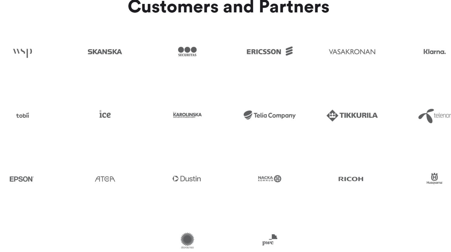 - 150 asiakasta 30 maassa, toimistot Tukholmassa, Sofiassa, Lontoossa ja San Fransiscossa