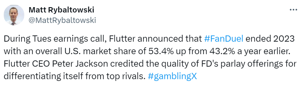 Konferenssipuhelussa toimarin mukaan Fanduel tarjoaa parhaat kertoimet ja parhaimmat voitot, samalla kun se on erittäin kannattava sportsbook. Tämä kertoo FanDuelin ja Flutterin tiimien laadun tasosta.
