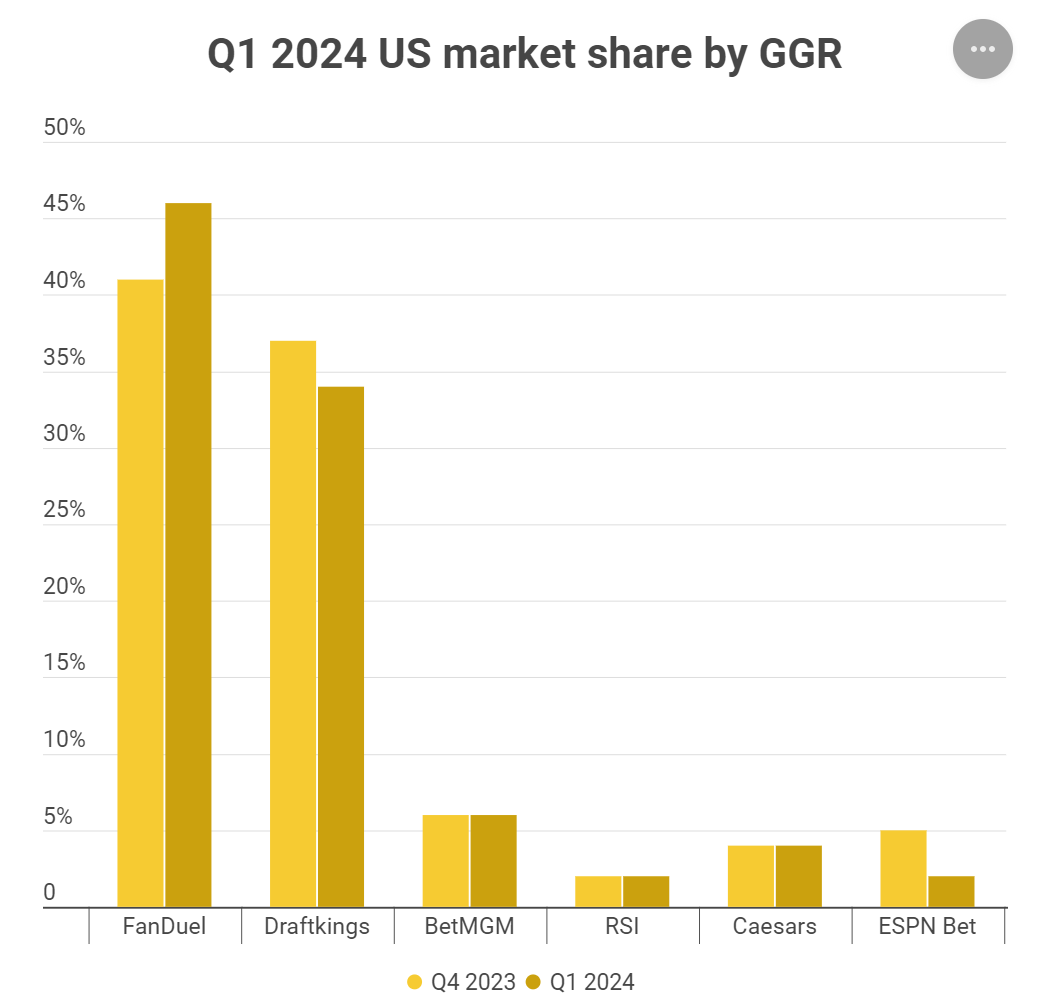 On the other hand, FanDuel’s market share rose slightly from 38% in Q4 to 39% in Q1.