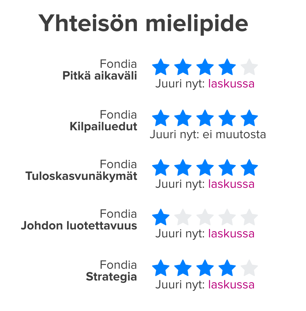 Eipä paljon kysymyksiä heitelty suoraan lähetykseen. Hätäinen katsaus ja merkityksettömiä fraaseja, jotka jättävät ison sumun koko yhtiön päälle. Firmassa uskoa riittää, mutta tulokset ovat säälittäviä kaikilla mittareilla. Johonkin (villi veikkaus: tehottomuuteen) rahat valuvat. Olen vahvasti eri mieltä toimitusjohtajan kommentista, että Fondia on omistajille hyvä sijoituskohde tällä hetkellä.