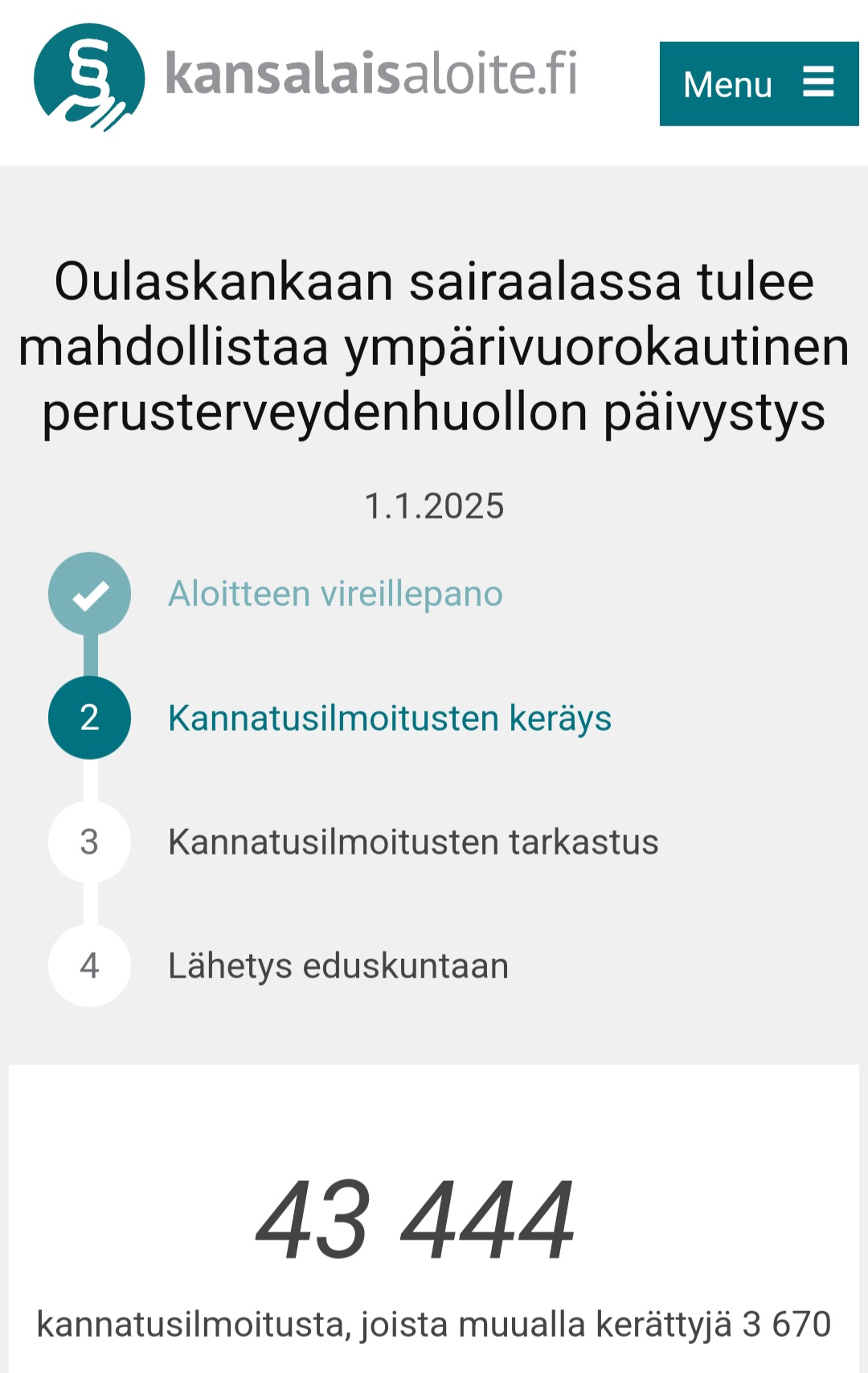 An overwhelming majority of residents in the southern Oulu region, regardless of political affiliation, support maintaining Oulaskangas night emergency services, which are central to the regionâs health services and safety. For this reason, a citizensâ initiative was launched in favor of the night emergency services, which has already gathered over 40,000 signatures.