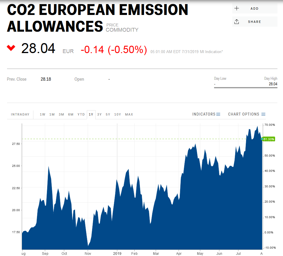 E: Päästöjen hinta tällä hetkellä