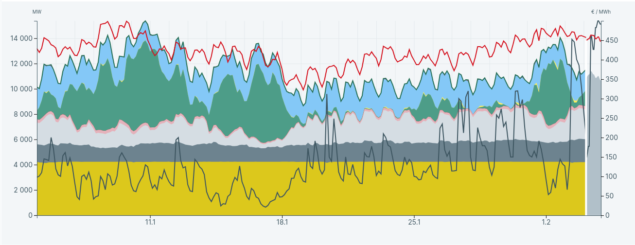 Puhuvat aina että ollaan omavaraisia sähkössä, joka tietysti on roskapuhetta. Keskiarvo sen näyttää kun muina vuodenaikoina tuulee ja aurinko paistaa, mutta talvella tämä on tosi onnetonta. En tiedä miten tulevaisuudet datakeskukset jos ne tänne tulee saa virtansa. Luultavasti kansa maksaa entistä korkeampaa hintaa talvella sähköstään, koska kapasiteetti ei yksinkertaisesti riitä tuottamaan sitä tarpeeksi kotimaan markkinoille.