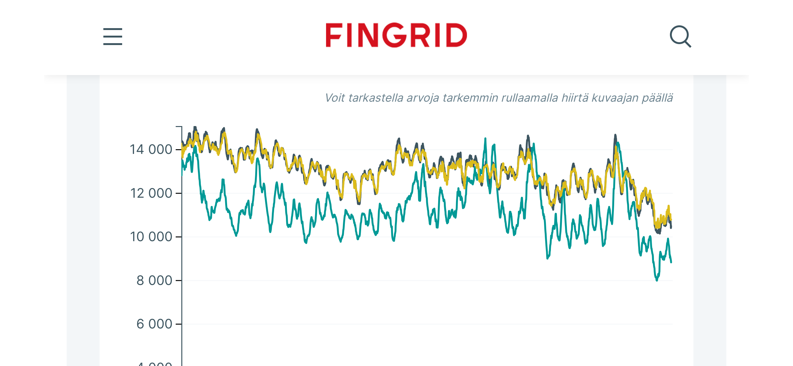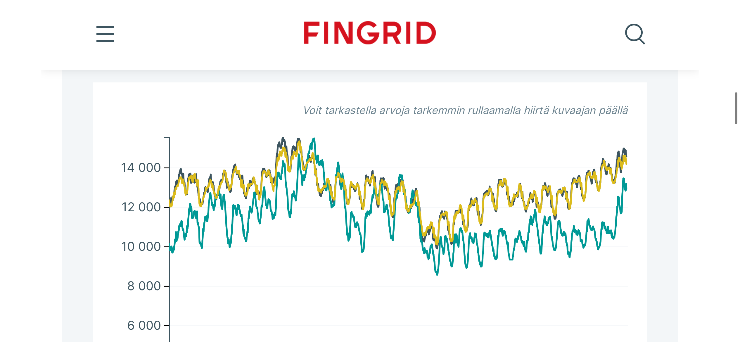 Nedan bifogar jag kurvorna för Finlands förbrukning och produktion från Fingrids webbplats. Överst är februari och underst januari. Gult visar förbrukning och blått produktion.