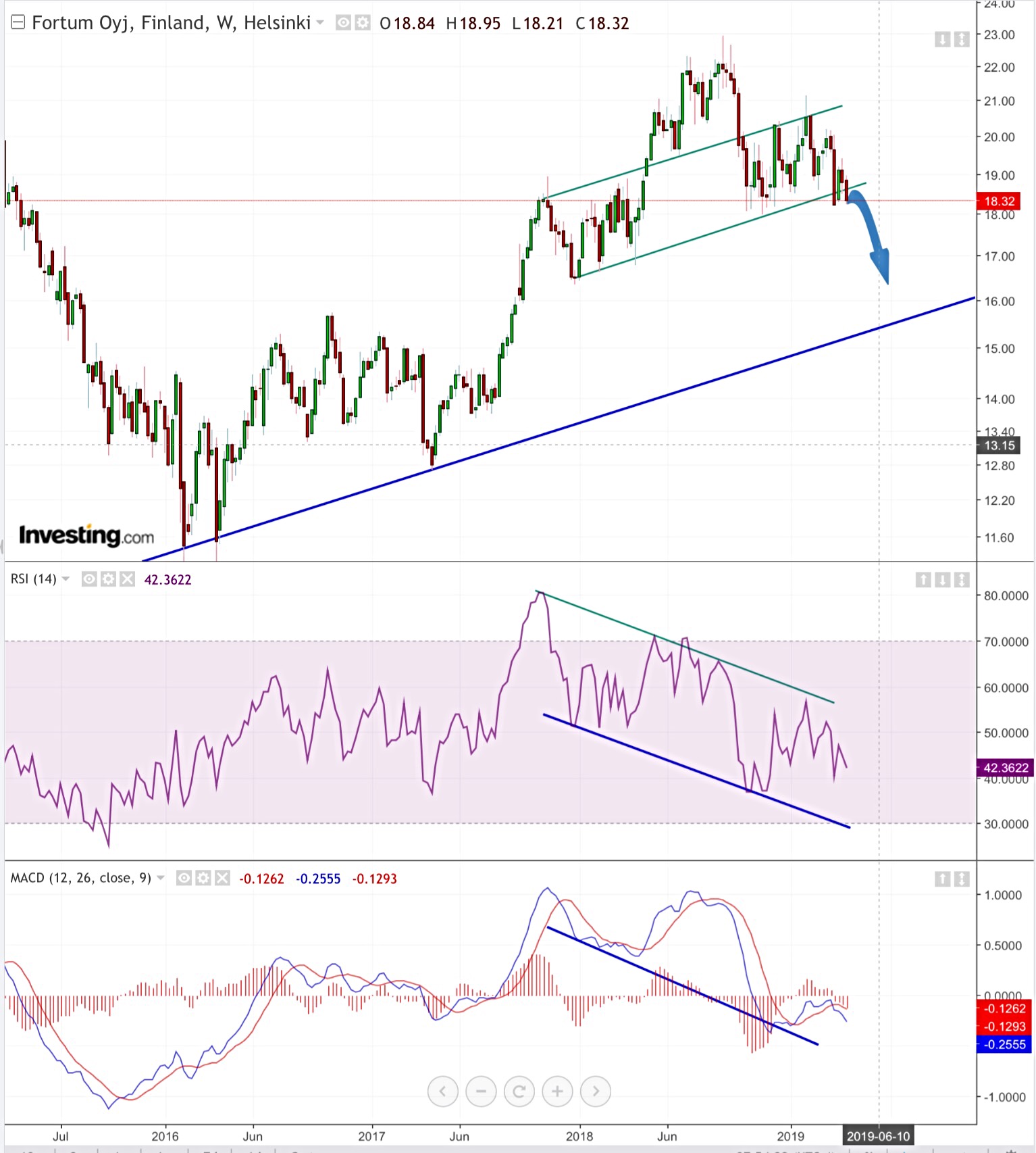 … dessutom ser det tekniskt ganska svagt ut, momentum-diagrammen förutspår snarare en nedtrend än ett hopp. MACD och RSI ritar en ganska stark divergens mot prisgrafen.