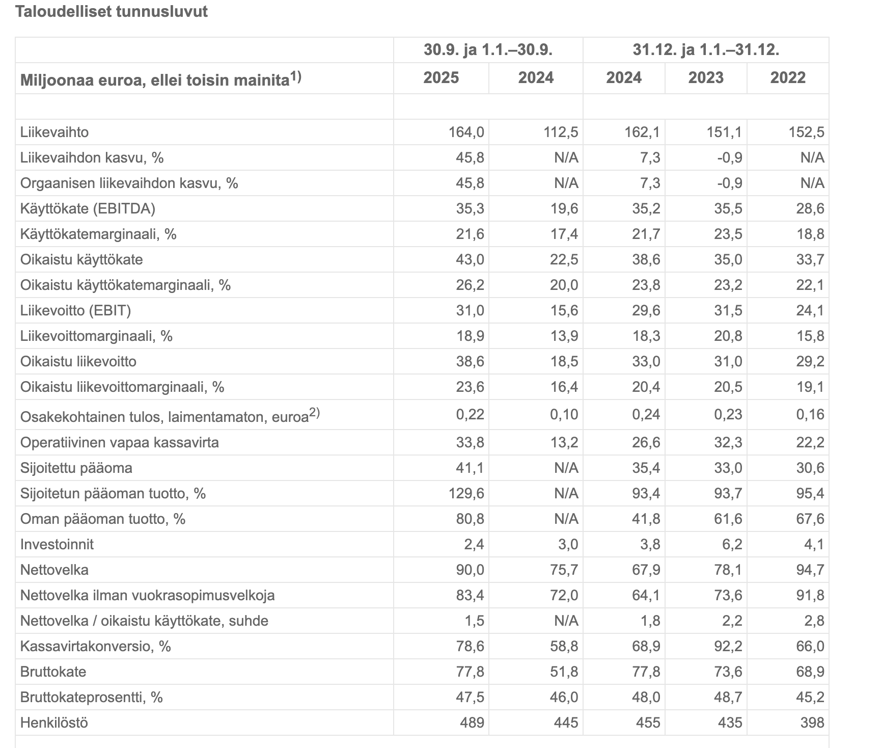 Framery arvioi, että sen liikevaihto vuonna 2025 on 214–226 miljoonaa euroa (vuonna 2024: 162 miljoonaa euroa) ja oikaistu liikevoitto on 48–54 miljoonaa euroa (vuonna 2024: 33 miljoonaa euroa).