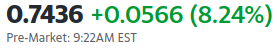 En ole varma näenkö pre market hintoja oikein. Jos joku kerkiää vastata ennen aukeamista mikä tämän hetken tarkka hinta on? Tradingwiev näyttää 0,68 ja degirossa 0,75 ympärillä