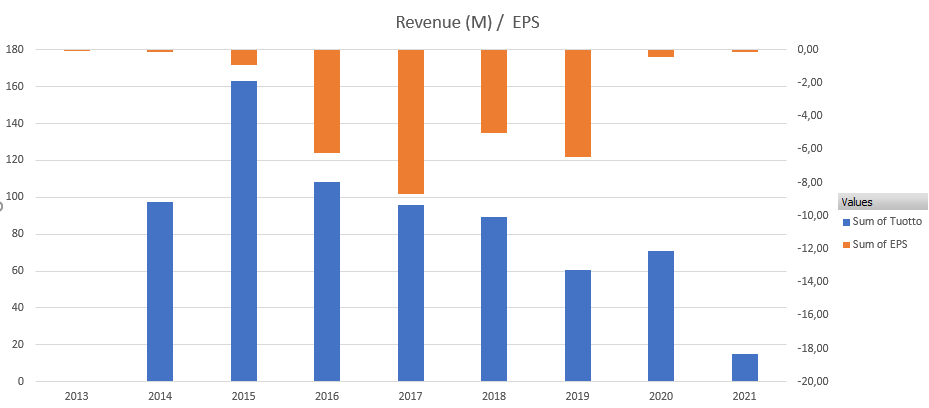 En tiedä mihin suuntaan kurssi tästä lähtee, mutta onhan tässä laskuvaraa vieläkin. Pari kolme vuotta sitten tämä oli senttiosake ja lähes joka kvartaali jäädään edelleen odotuksista. High risk, high reward.
