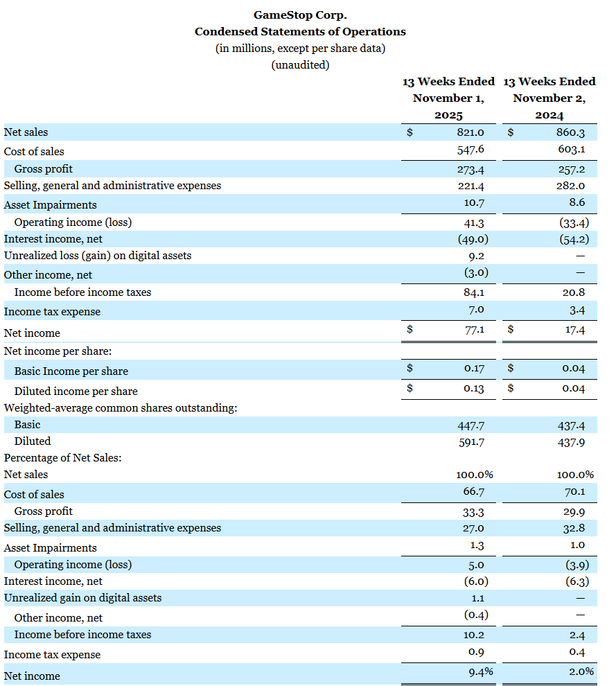 GameStop holds almost all of its assets in cash and some short-term investments, foregoing interest income, and its debts and lease liabilities have significantly decreased within a year.