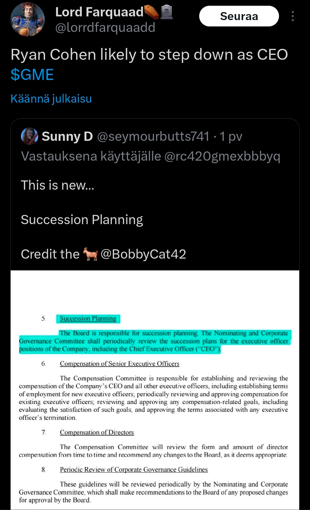 Nice to hear if they’ve been useful . For me, GME is primarily a level-to-level trading instrument, and I don’t really know if I want to speculate further in public on different scenarios, as most of them are guesses based on small crumbs of fact as well as rumors, with very varying outcomes (I have numerous variations in mind). The situation also changes as the facts change, and the equation naturally includes RK’s options entitling him to 12 million shares expiring on Friday, June 21, and their financing, Ryan Cohen and his diluted position, as well as GME’s potential investment and M&A targets, etc.