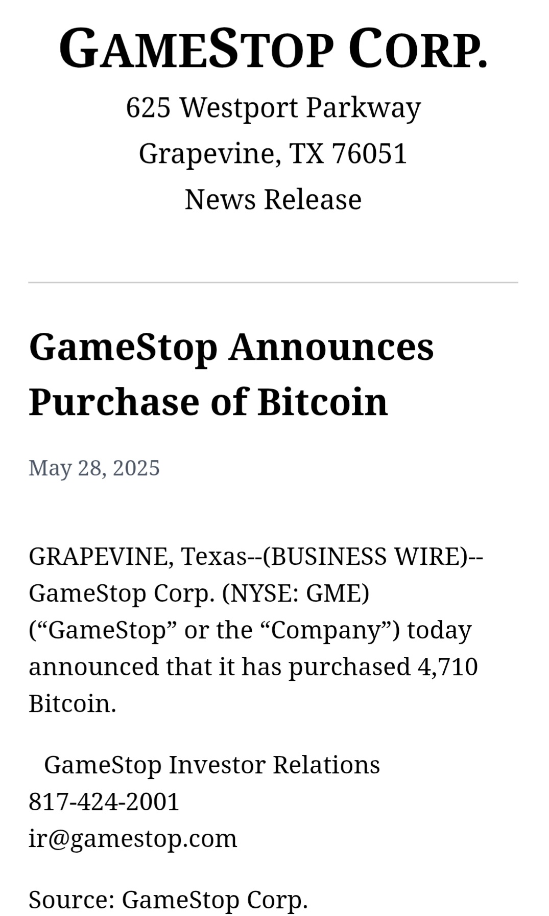 In my opinion, this press release doesn’t really say anything about it either. It only stated that GameStop announced it would issue $1.3 billion in interest-free convertible senior notes, which will probably be used for Bitcoins (and much more?), but not the total amount.