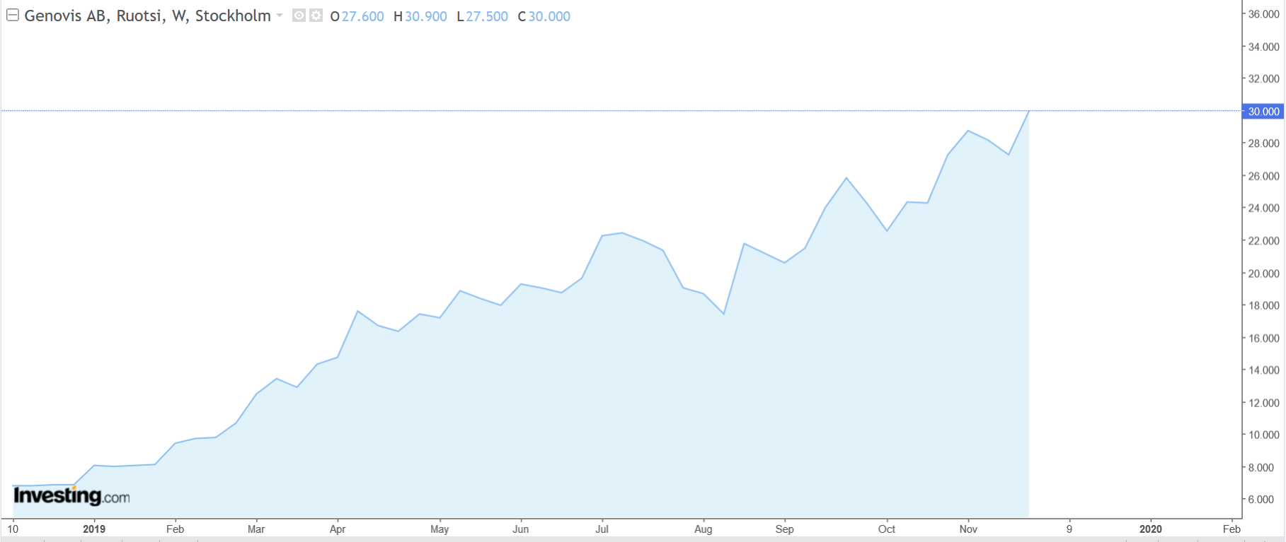 Genovis on hissukseen ohittanut Redeyen Base -tason (23 SEK) ja yläviistoon on lupaavasti ollut matka. Monia askarruttaa varmaan mitä osariQ3 avaa esille 21.11 ja jännitys tietty tiivistyy. Ollaanko menossa kohti voitollista tilikautta 2019 vai mitä mahtaa olla näkymä?