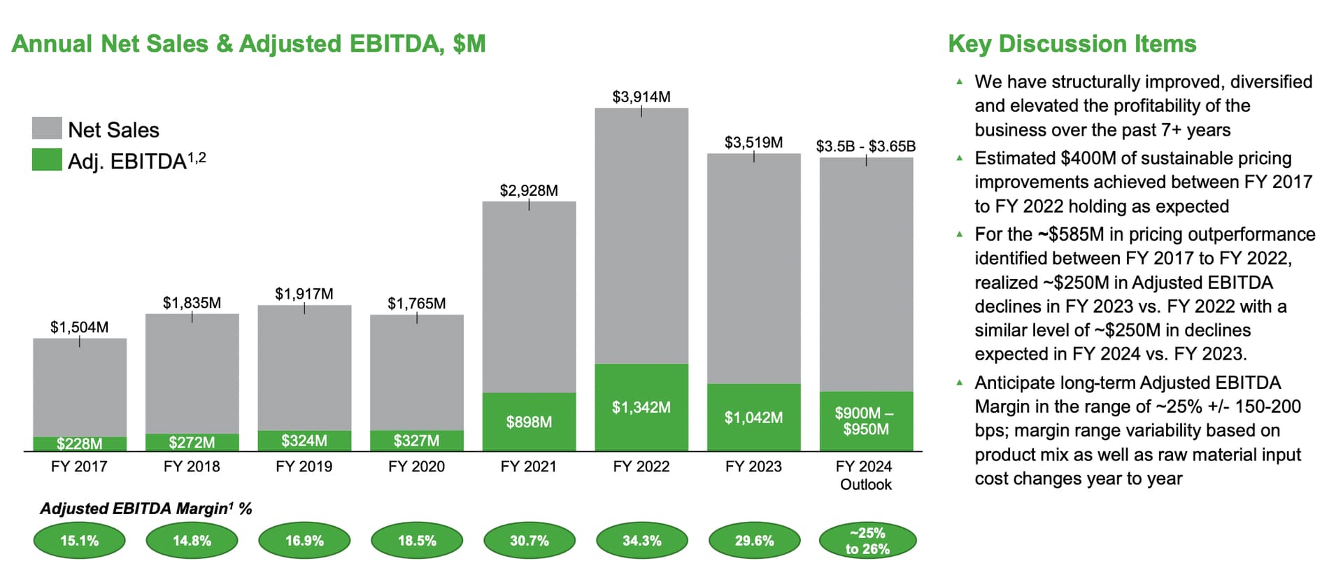 Toki Atkoren osalta yhtiön kannattavuus on ollut viime vuodet huomattavasti korkeammalla kuin mitä se on ollut historiallisesti ja osa siitä kannattavuudesta poistuu nyt 2023-2024, kuten yhtiö on jo pitkään viestinyt. Siksi yhtiö antoikin sen +18 $ EPS ohjeistuksen vuodelle 2025 (P/E 7,3 nykymarkkina-arvolla) kommunikoidakseen mikä on normalisoitu tulostaso. Yhtiön käyttekatemarginaali oli aiemmin pitkään noin 13 % tasoa ja johto ohjeistaa että se olisi jatkossa ~25%. Johdon viesti on ollutkin että yhtiön on transformoitunut rakenteellisesti huomattavasti kannattavammaksi viimeisen parin vuoden sisällä, mutta markkina ei välttämättä tätä vielä täysin usko, mikä voi osaltaan selittää alhaista arvostusta ja lyhyeksimyyntiäkin.