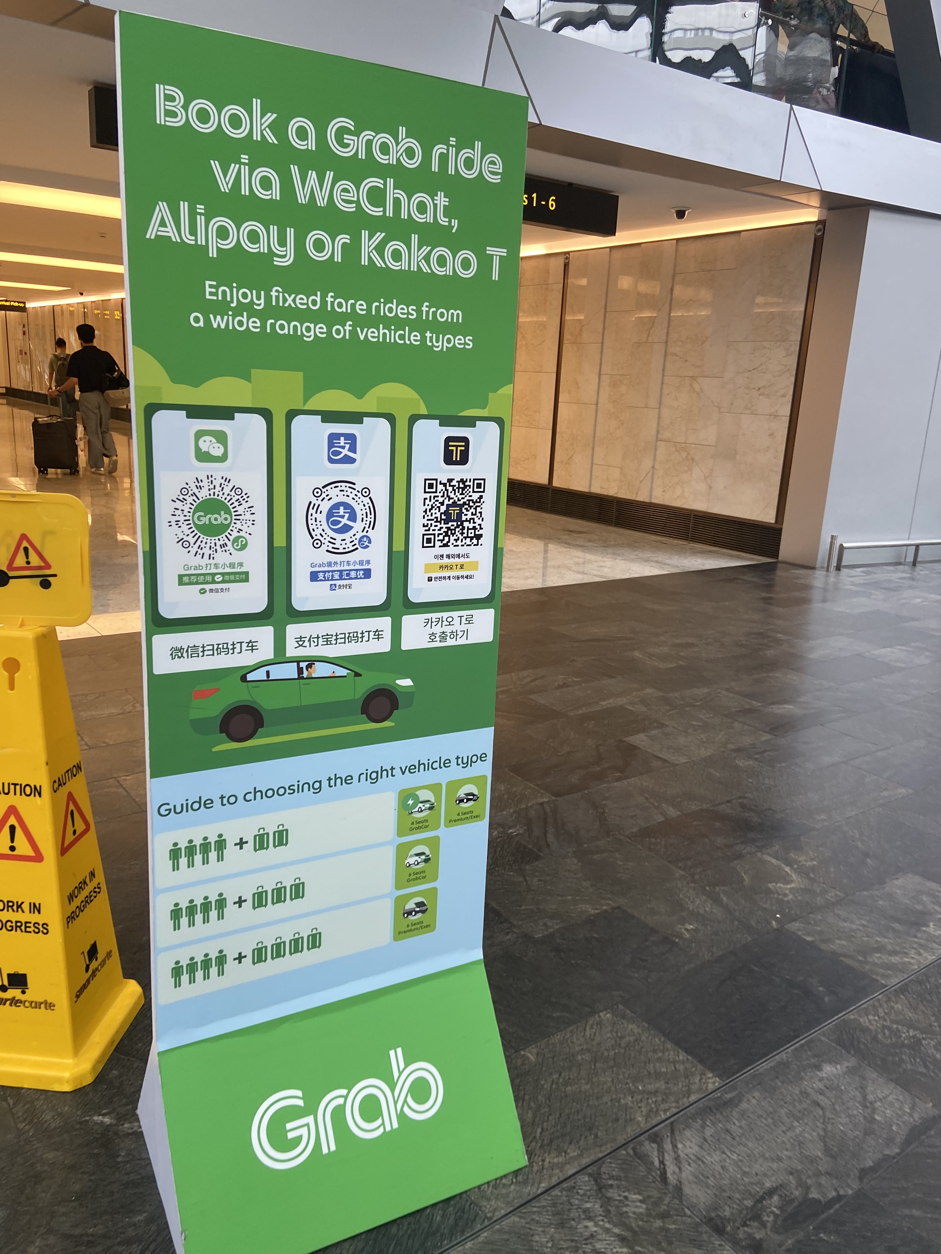 Vähän ketjusta menee ohi, mutta hyvin näkyy Grabin mainokset tullessa niin Singaporen, Indonesian kuin Thaimaan lentokentillä.