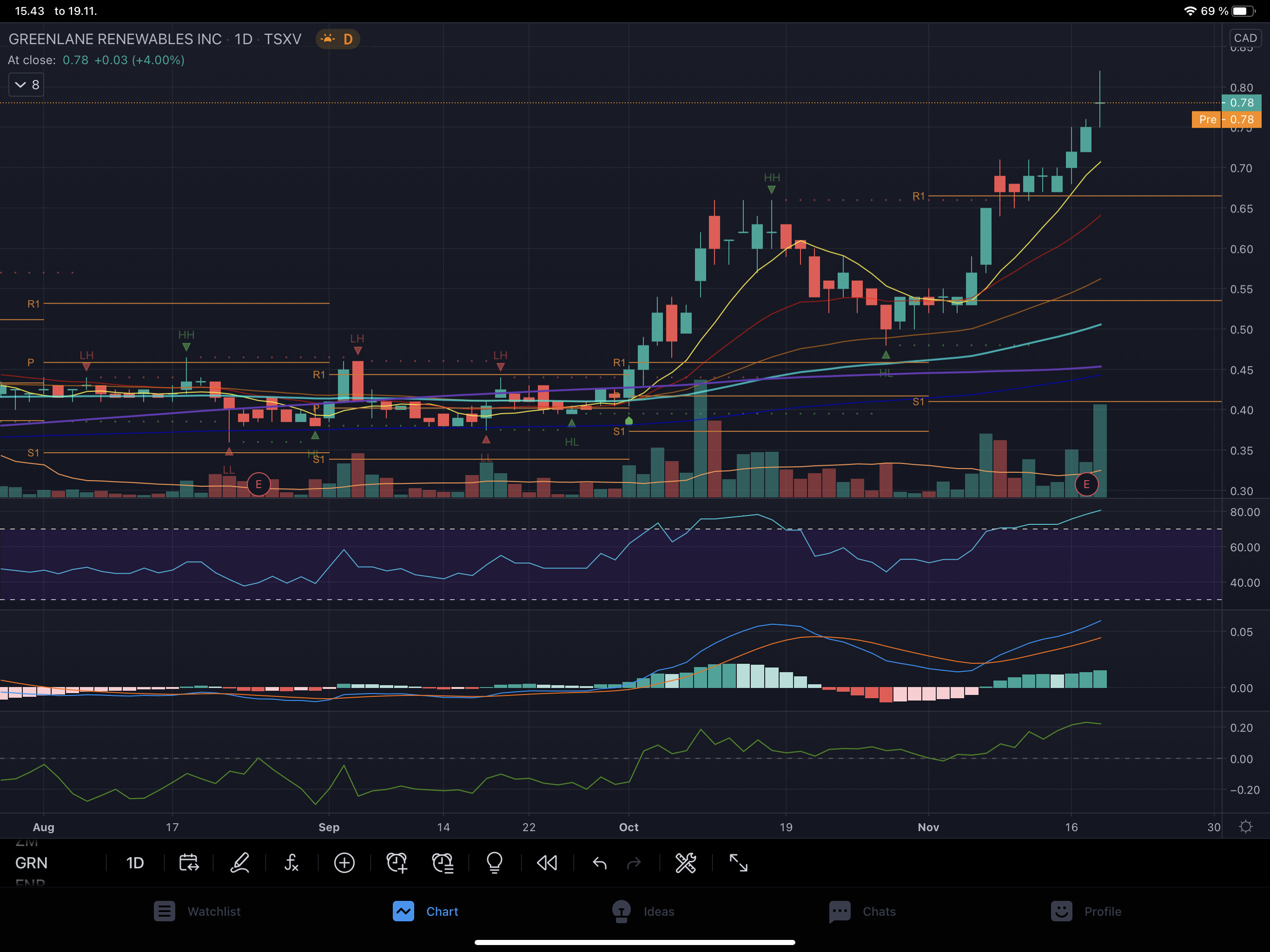 Q4 on aika kriittinen tässä, kunhan tulos on hyvä ja positiivinen kehitys jatkuu niin osakkeen hinta olisi jossain 0.8 - 1.0 CAD välillä ja warrantit käy kuumille kiville.