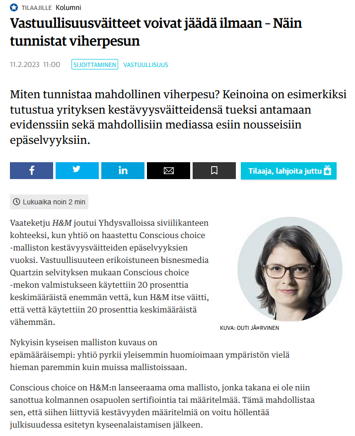 Ylipäänsä H&Mn ansaintlogiikka pikamuotina sopii todella huonosti nykyisiin EU-tavotteisiin. Koko bisnesidea perustuu siihen, että pystytään tekemään massivisia hankintoja ja myydään suurella volyymilla, muita edullisemmin ja juuri sen hetken muotivaatteita, jotka vanhenevat nopeasti.