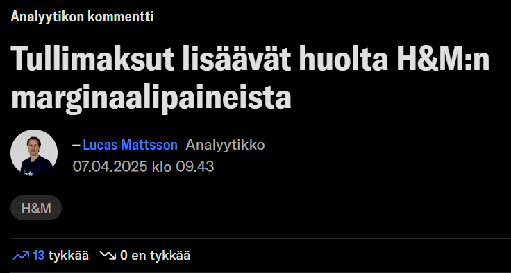 H&M:n seuranta on muuten siirtynyt hiljattain Lucas-karhulle