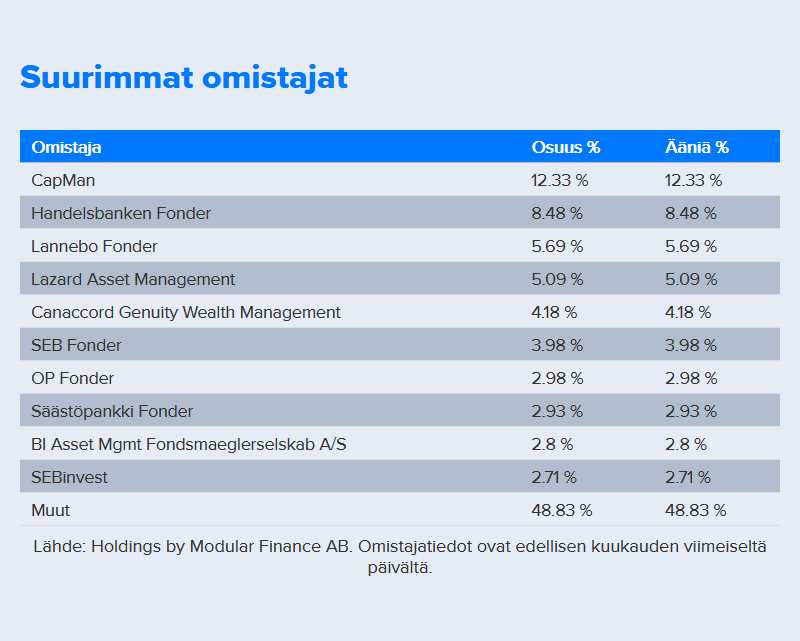 Inderesin palvelusta löytyy muuten listaus omistajista, jossa mukana myös hallintarekisteröidyt: