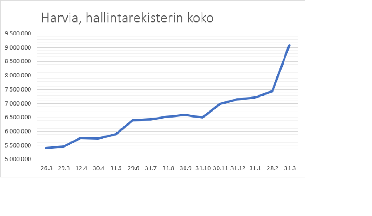 Hallintarekisterin koko päivitetyssä kaaviossa 31.3 tilanteen mukaan. Suurin osa siis Capmanin myynneistä meni ulkomaalaisten haltuun.