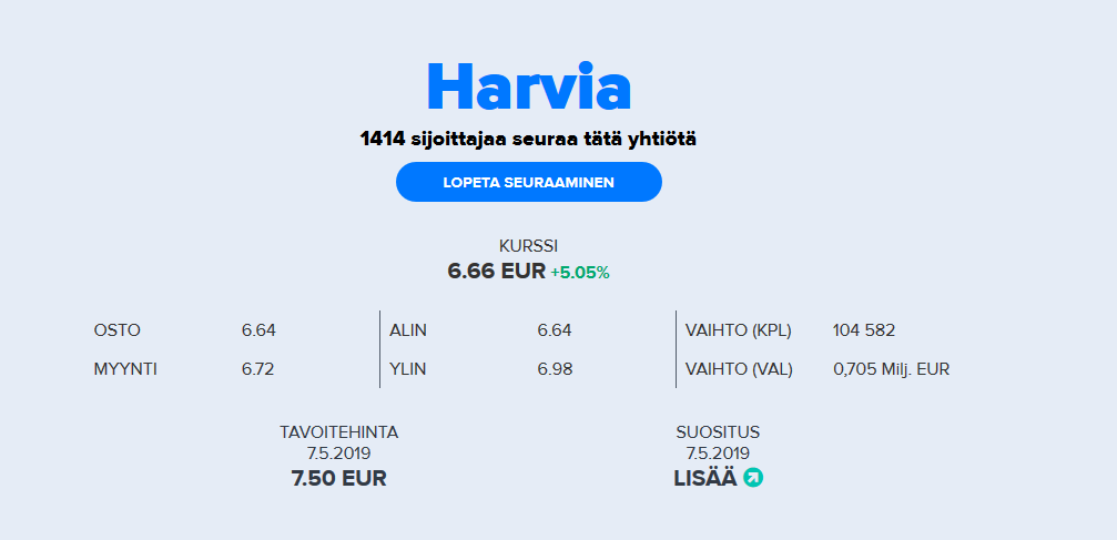 Avanzan kautta 217 piensijoittajaa näkyy omistavan Harviaa.