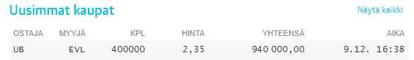 Heeroksella on osakkeita 4 349 963 kpl. Eli reilut 9% osakkeista vaihtoi omistajaa.