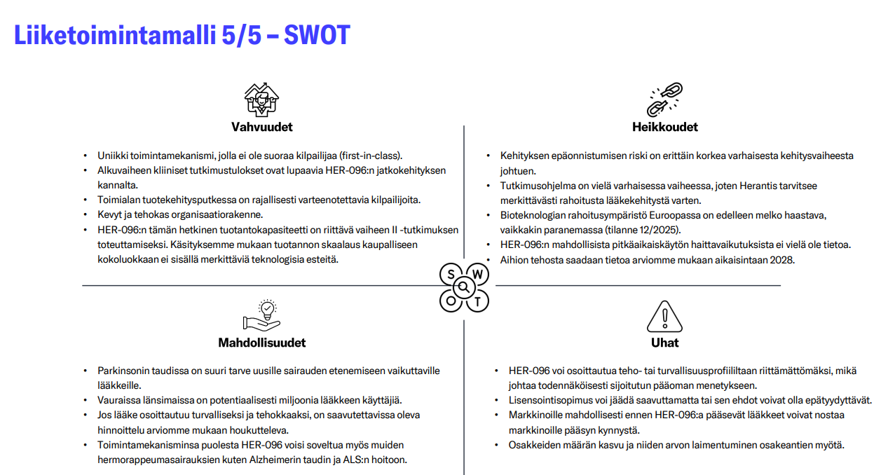 ”Biomarkörresultaten som stöder den förväntade verkningsmekanismen för HER-096 hos personer med Parkinsons sjukdom innebär en central milstolpe i utvecklingsfasen för Herantis. Resultaten minskar riskerna i programmet ur potentiella partners och investerares perspektiv, stöder förberedelserna för fas 2-studien för att utvärdera den kliniska effekten av HER-096 samt ger information för valet av läkemedelsdosering. Dessa observationer stärker förtroendet för programmets långsiktiga värde, och vi ser fram emot diskussioner om dessa uppmuntrande resultat med potentiella läkemedelspartners”, kommenterar Herantis Pharmas VD Antti Vuolanto.