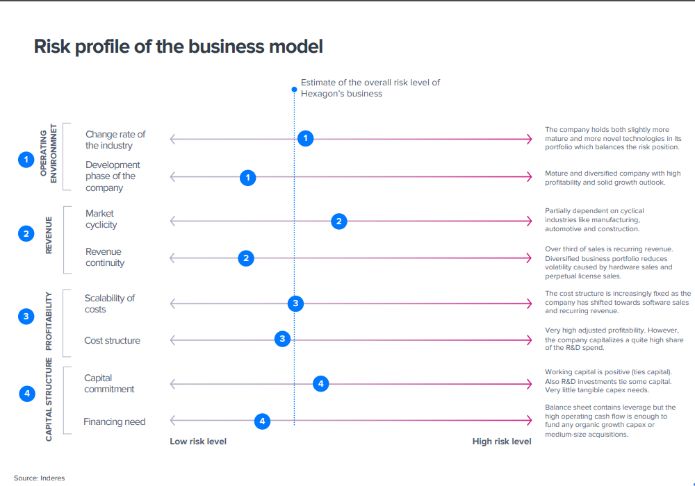 Toistuva SaaS-tulo kasvoi tasaisesti koko vuoden ja siten yhtiö harkitsee SaaS-liiketoimintojen osittaista irrottamista omaksi kokonaisuudekseen, vaikka vaikka Q3-myynti ja liikevoitto jäivät odotuksista niin syklinen elpyminen ja uudet tuotteet voivat tukea Hexagonin kasvua tulevina vuosina. Tämän em. divisioonan mahdollinen eriyttäminen voisi myös pitkällä aikavälillä tehostaa strategista kehitystä.