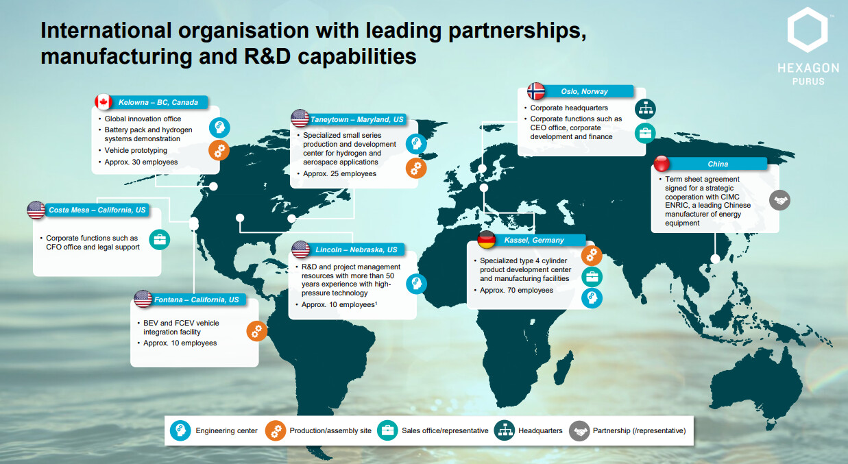 Det drejer sig altså om verdens førende producent af “zero emission” brinttanke og batterisystemer. Selskabet har en førende position, især inden for Type 4-brinttanke, og anvendelsesområderne omfatter brintbiler, lastbiler, busser, tog, færger, tankstationer osv.: