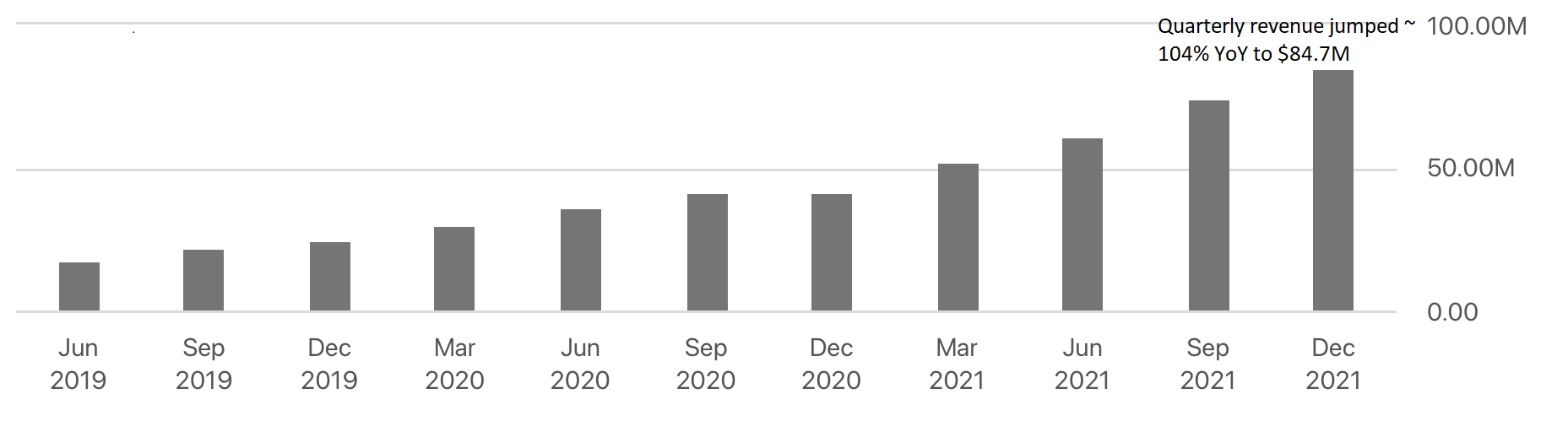 Full year revenue grew 83% year-over-year to $271.9 million. Q4 2021 revenue increased from Q3 2021 and grew 104% year-over-year to $84.7 million*