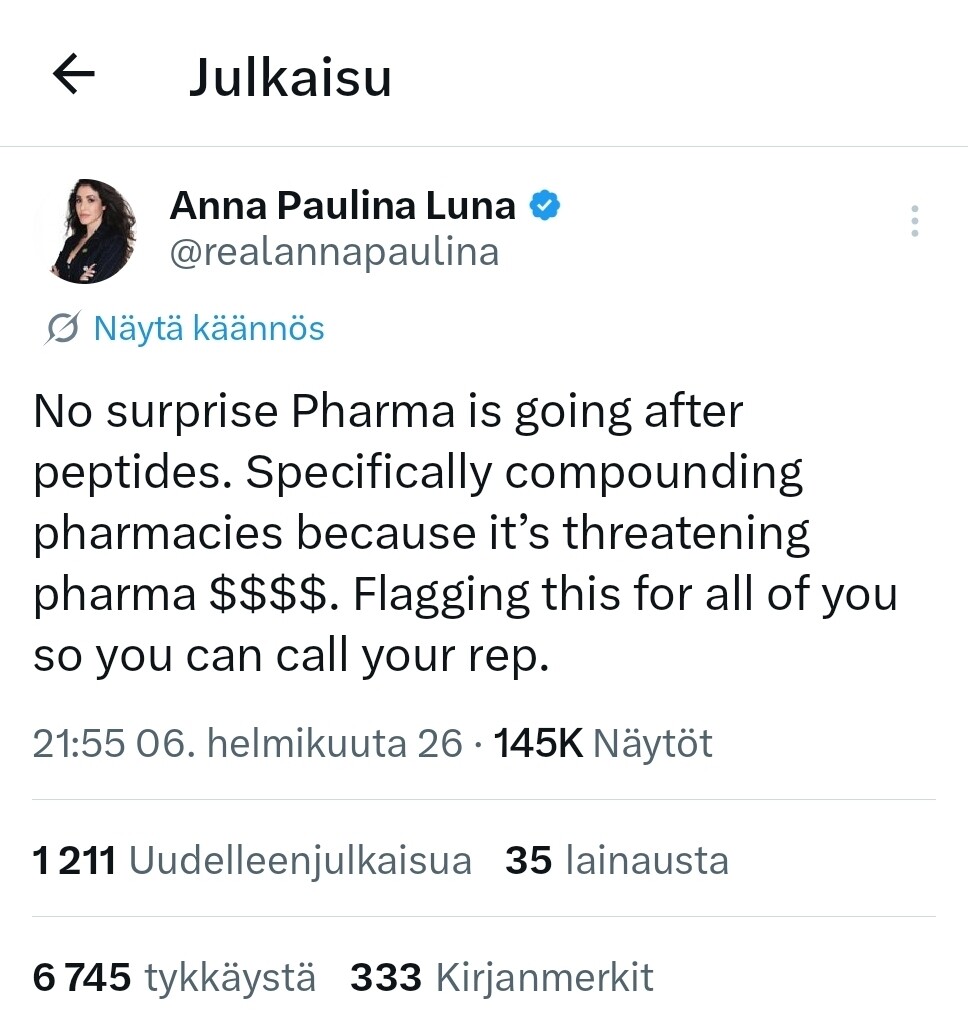 There is no scientific evidence as to whether Hims’s pill works at all. As I understand it, semaglutide is a large peptide, so it breaks down easily in stomach acid and isn’t absorbed without an effective delivery mechanism. There is no evidence for the “bioavailability” (biosaatavuus) of Hims’s product.