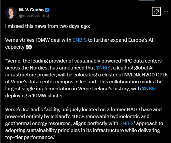Nebius on vielä pieni, mutta pääomasijoittajien kautta se on päässyt jaloilleen ja kasvaa nopeasti. Heidän keskeisin palvelu on tarjota AI laskentakapasiteettia riippumattomille AI kehittäjille. Tässä minusta piilee isoin riski. Amerikkalaiset megafirmat saavat varmasti Nvidian GPU:t edullisemmilla hinnoilla kuin Nebius. Eli megateknot pystyvät tarjoamaan kapasiteettia lähtökohtaisesti Nebiusta halvemmalla. Mutta avasin tämän ketjun juuri tämän takia, että pystyisimme yhdessä ymmärtämään, miten ja minne asti Volozh aikoo Nebiuksella mennä.