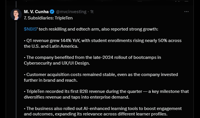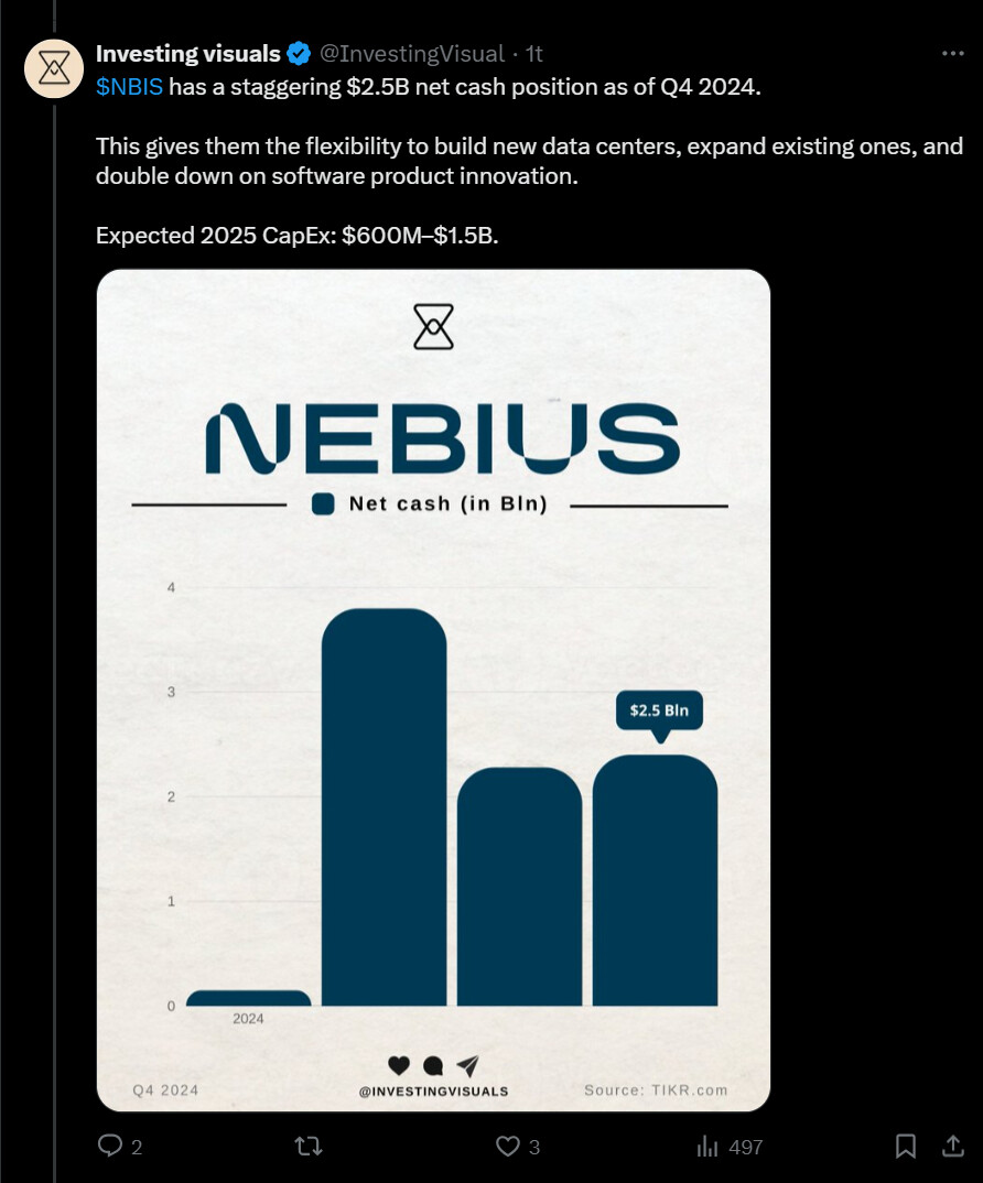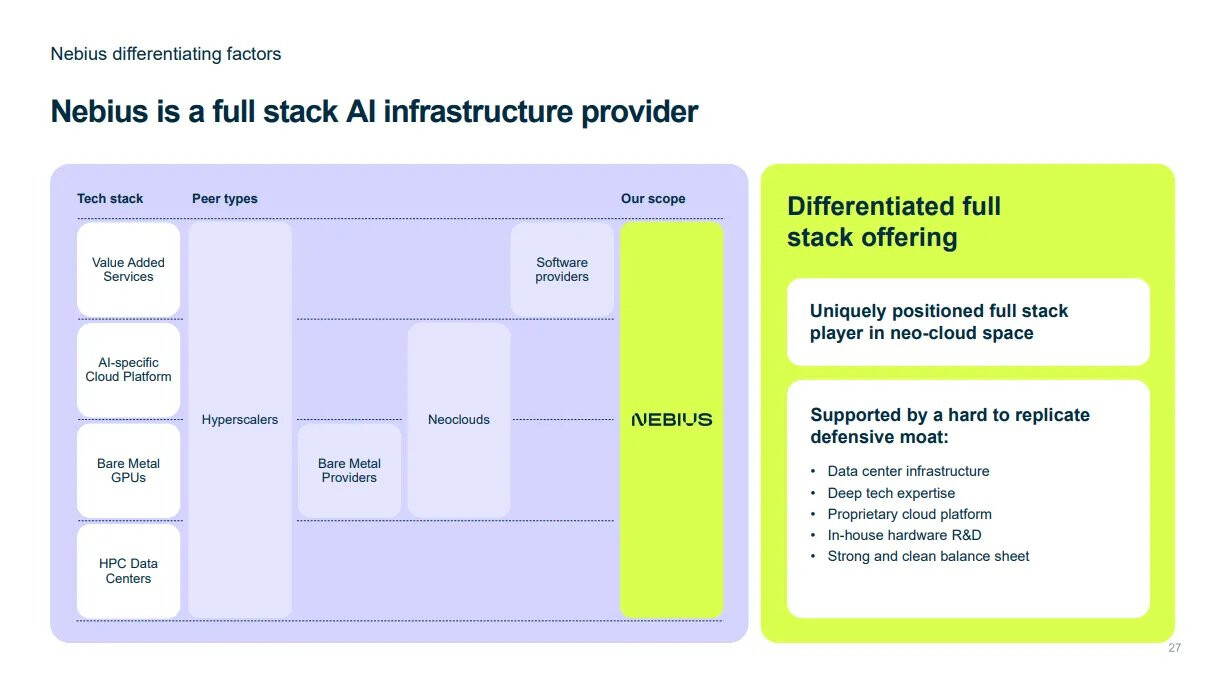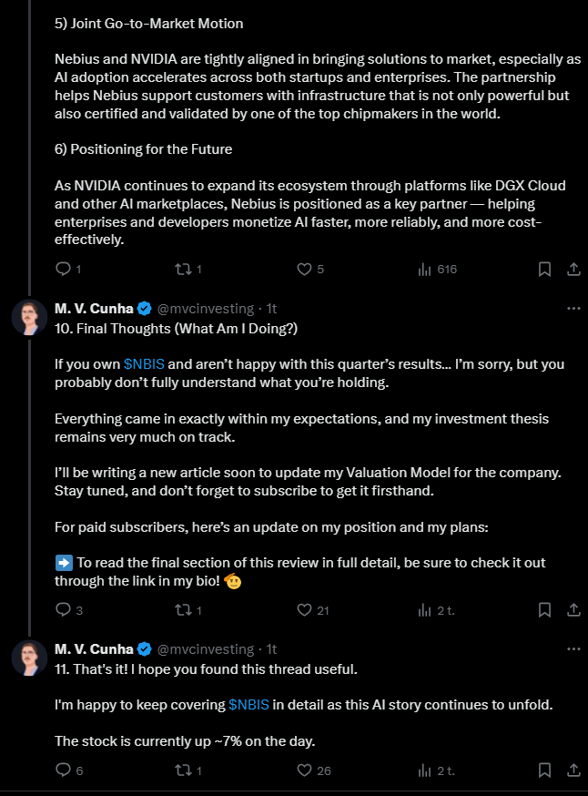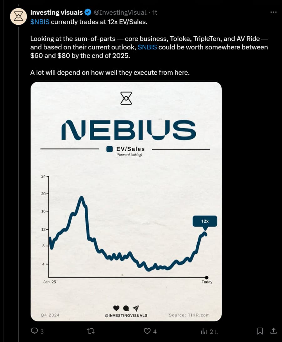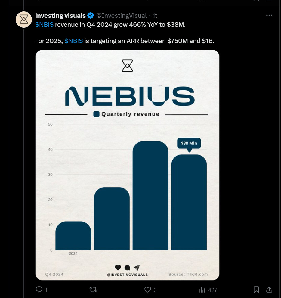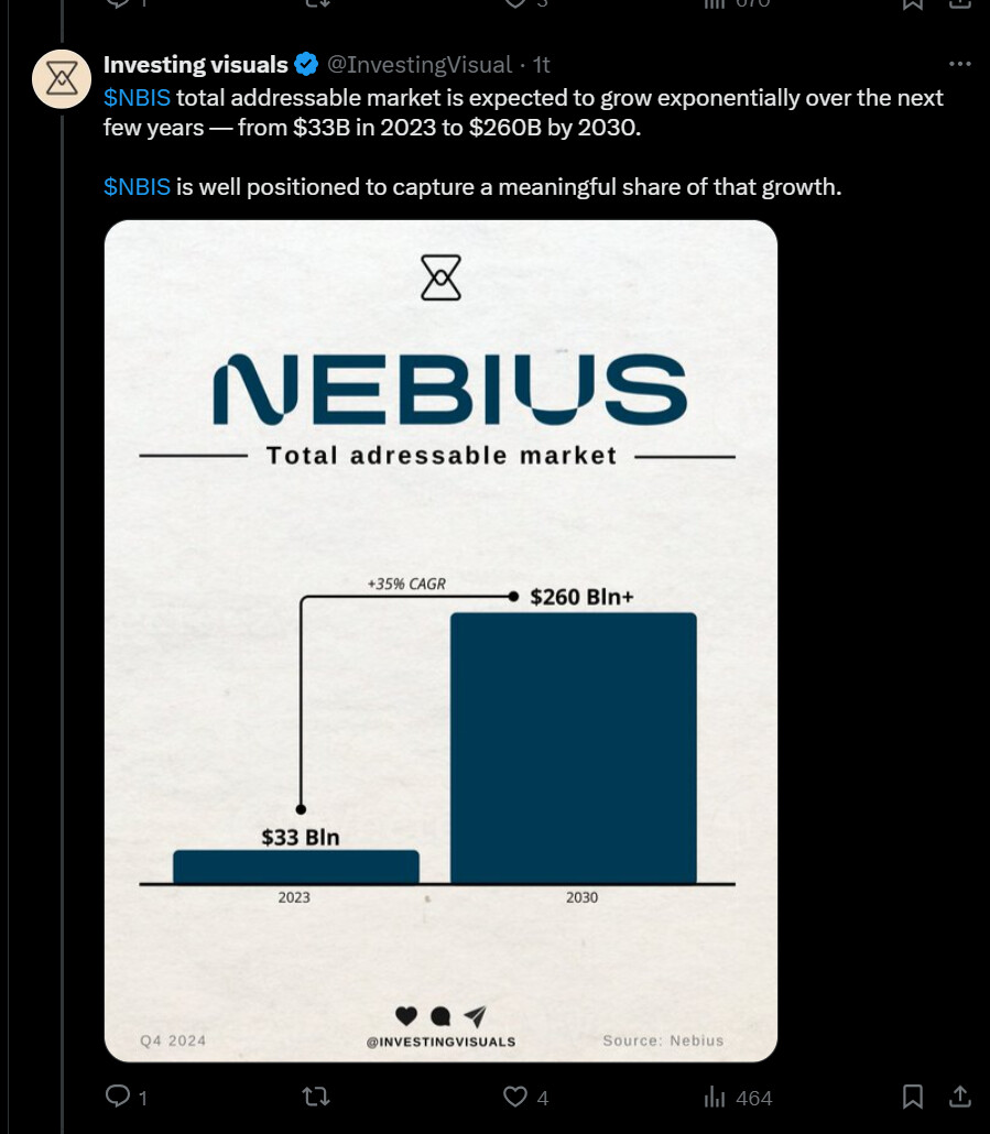 Tviitissä tuodaan esille ennestään tuttuja asioita mm. miten Nebius tarjoaa pilvi-infrastruktuuria tekoäly- ja yrityssovelluksiin ja toimii nopeasti kasvavalla alalla.