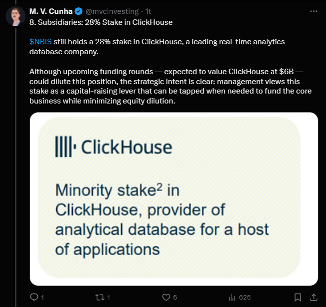 Kirjoituksessa käydään läpi tärkeimmät lyhyen ja keskipitkän aikavälin ajurit, kuten esim. datakeskushankkeet, ClickHouse-omistus, Avriden rahoituskierros ja laajentuminen Aasiaan + Eurooppaan. Ihan hyvää settiä, tämän kaverin juttuja on ennenkin ollut täällä, kuten esim. tuossa yläpuolella.