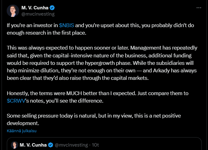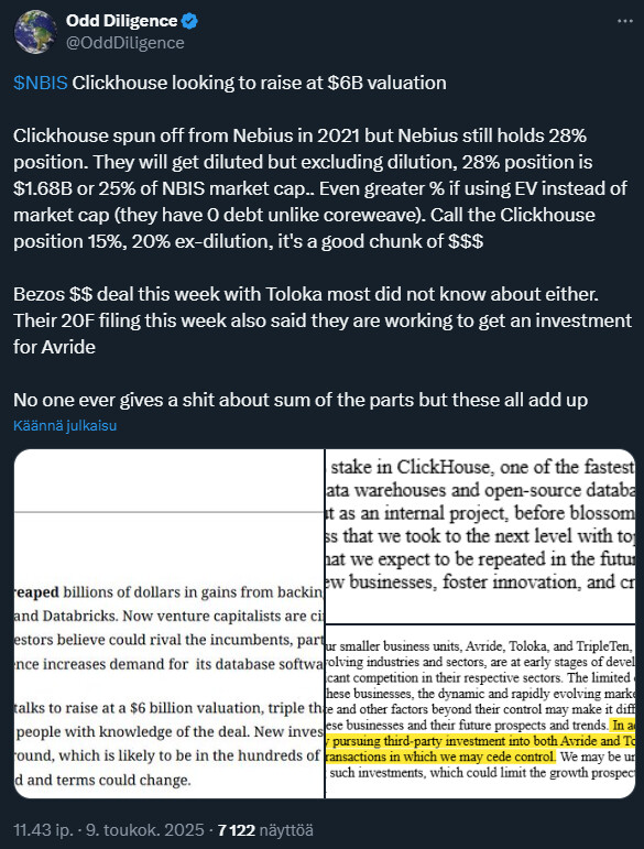Kirjoituksessa käydään läpi tärkeimmät lyhyen ja keskipitkän aikavälin ajurit, kuten esim. datakeskushankkeet, ClickHouse-omistus, Avriden rahoituskierros ja laajentuminen Aasiaan + Eurooppaan. Ihan hyvää settiä, tämän kaverin juttuja on ennenkin ollut täällä, kuten esim. tuossa yläpuolella.