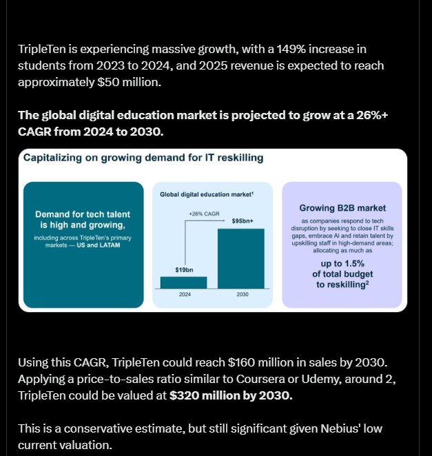 Nebiuksen tarina on minusta hyvin kiinnostava ja siksi avasin ketjun. Tässä muutama asia, mitkä herättivät oma kiinnostukseni seuraamaan yhtiötä. Yandex perustettiin 23. syyskuuta 1997, kun taas Google perustettiin vuosi Yandexin jälkeen, 4. syyskuuta 1998. Arkady Volozh on tunnettu teknologiayrittäjä, joka on parhaiten tunnettu Yandexin, “Venäjän Googlen”, perustajana ja entisenä toimitusjohtajana. Nyt hän on Nebiuksen toimitusjohtaja ja yhtiönsä kautta omaa 59% äänivallan Nebius Groupiin. Ja hänen osakeomistus on 15%. Eli johdon ”CV” ja osakeomistus on kohdallaan.