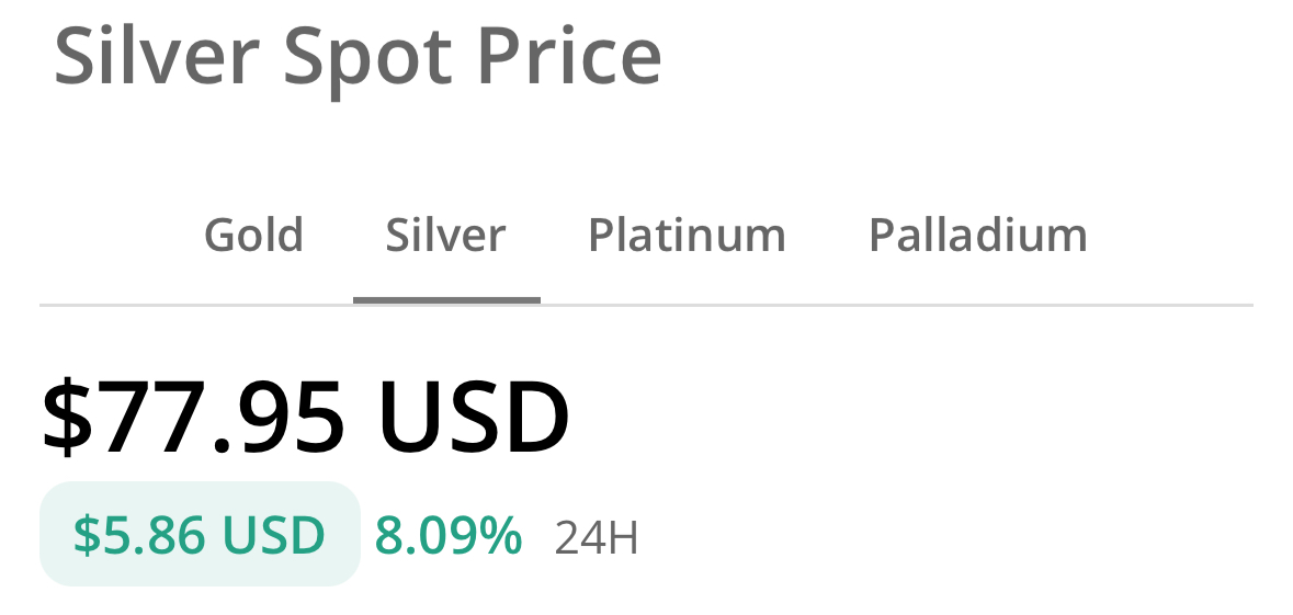 Kuukaudessa hopean hinta on noussut 46% mikä jo nostaa kulmakarvoja ihan kivasti. Tuollainen nousu alkaa tuntua jo omien pöytähopeiden omistajien varallisuudessakin. Ken on romuhopeaa hankkinut viime vuosina esim huutokaupoista on hänellä vallankin hyvät näkymät.