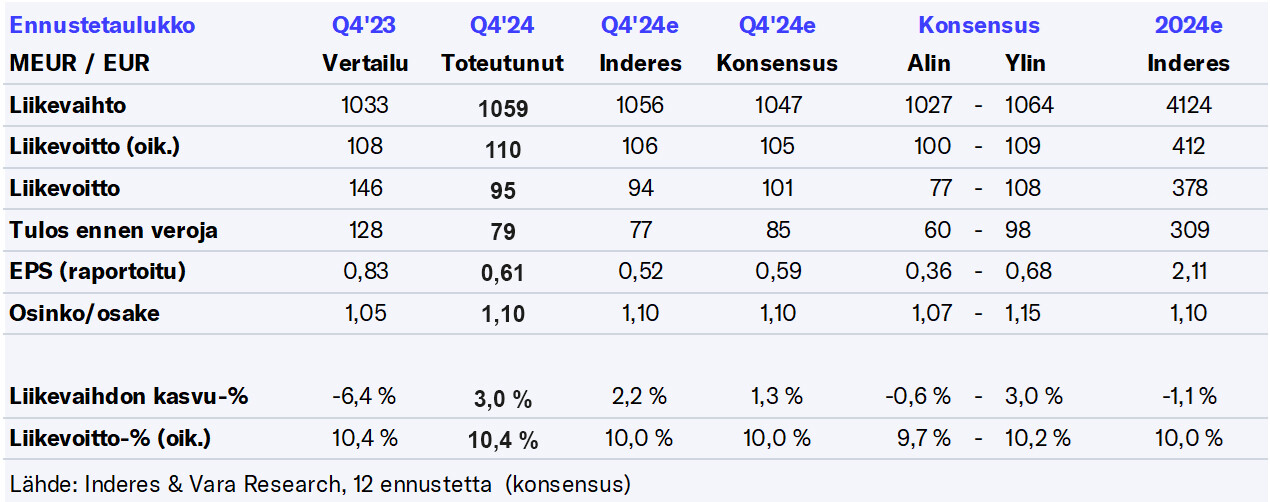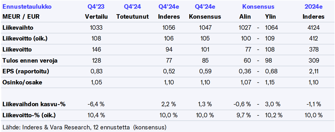 | milj. euroa | Q4 2024 | Q4 2023 | Muutos | 2024 | 2023 | Muutos | ||||||