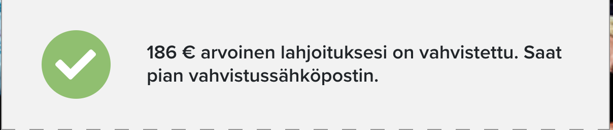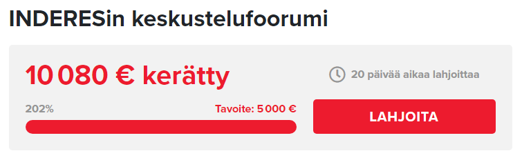 verran euroja sai tarttumaan toimeen. Kiitos Inderes, keräyksen järjestäjä ja kaikki lahjoittajat. Hienoa olla osa tätä yhteisöä.