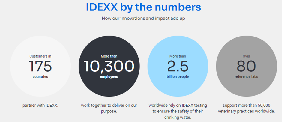 IDEXXillä on ratkaisuja pienten eläinten, karjan, siipikarjan, maitotuotteiden ja ihmislääketieteen diagnostiikkaan sekä veden testaukseen. Pääosa yhtiön fokuksesta on eläinlääketieteen puolella. Yhtiön tarkoituksena on omien sanojensa mukaan auttaa lemmikkejä elämään pidempiä ja täydempiä elämiä antamalla eläinlääkäreille työkalut ja teknologia saadakseen tarvitsemansa vastaukset.