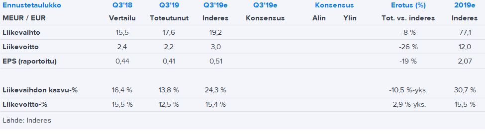 Incap julkaisi hetki sitten Q3-raportin. Kokonaisuudessaan raportti oli meille selkeä pettymys sekä kasvun että kannattavuuden jäädessä selvästi odotuksistamme. Myös yhtiön antama ohjeistushaarukka oli meille pettymys. Positiivista antia tarjosi kuitenkin yhä hyvällä suhteellisella tasolla säilynyt kannattavuus.