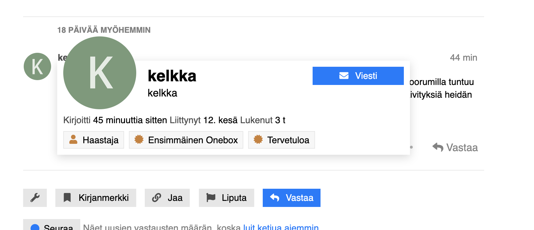 Kirjautuneena pääsee suoraan uusimpaan lukemattomaan viestiin.