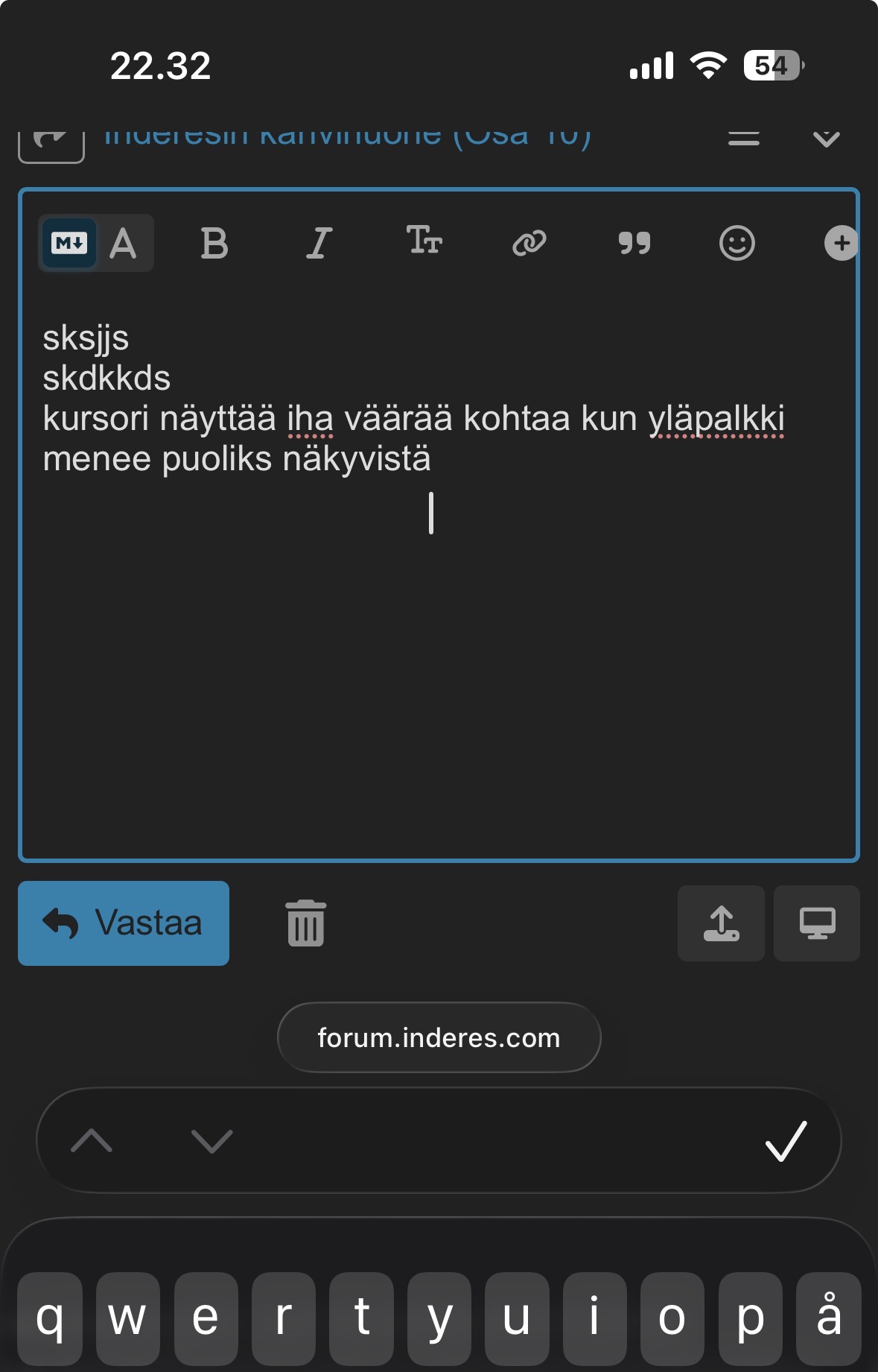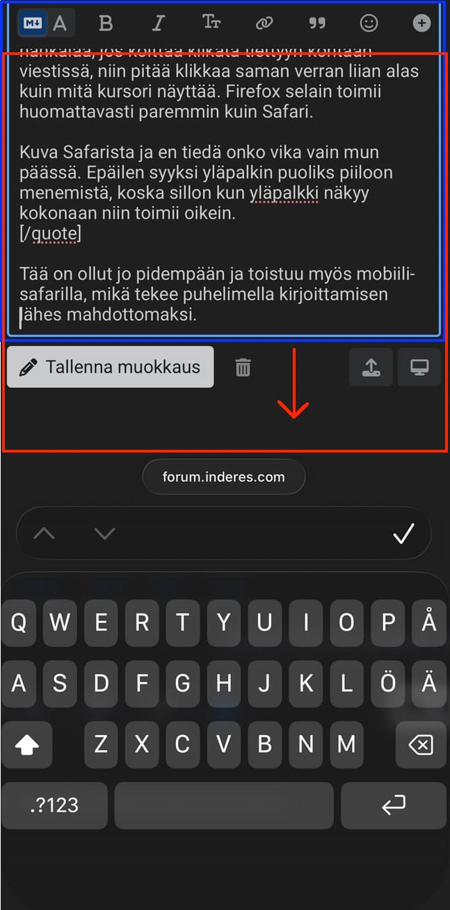 My Safari browser’s forum layout has gone a bit wonky since I updated iOS to version 26. The top bar goes half-hidden when I scroll down. And then writing a message is difficult; if I try to click a specific spot in the message, I have to click as much too low as what the cursor shows. The Firefox browser works significantly better than Safari.