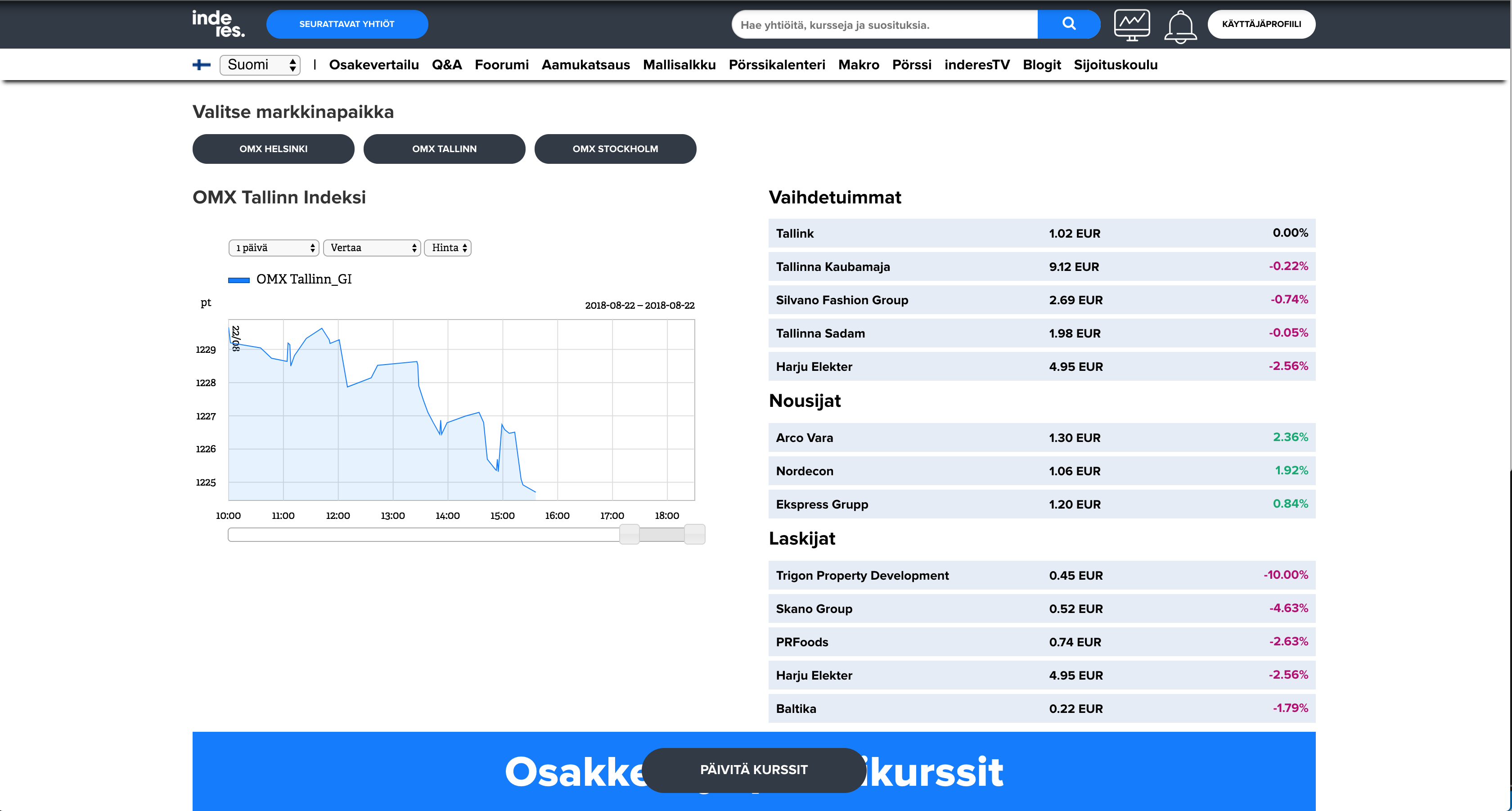 Nyt löytyy kaikki Viron Tallinnan pörssin osakkeet Inderes.fi palvelusta: Pörssi | Inderes: Osakeanalyysit, mallisalkku, osakevertailu & aamukatsaus