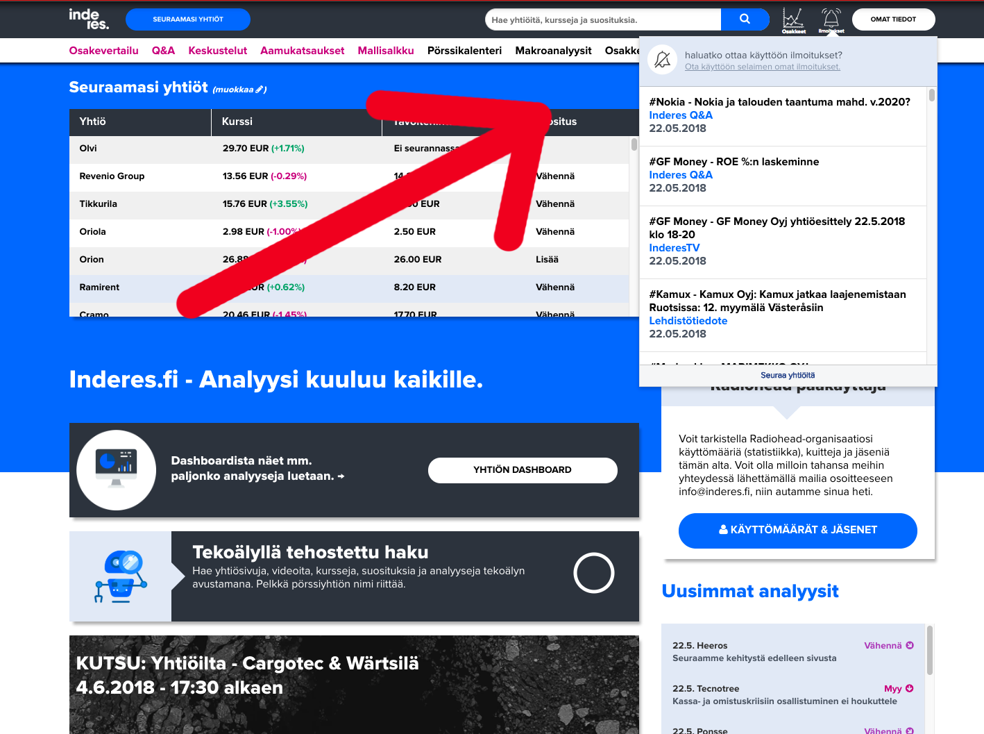 Notifikaatiot ja Service Workerit Tech Talkissa | Inderes: Osakeanalyysit, mallisalkku, osakevertailu & aamukatsaus