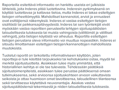 Ei varmaan tarvitse avata, mitä hankaluuksia, vastuukysymyksiä ja mainehaittaa Inderesin kaltaiselle analyysitalolle, jolla on luvat sijoitussuositusten antamiseen, syntyisi AI-työkalusta, joka antaa parhaimmillaankin keskinkertaisia vastauksia.